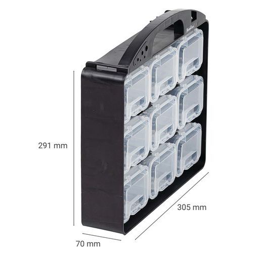 | Nome do artigo | Maleta com compartimentos, Carga máx.: 12.35 kg, Estanque: não, Altura total: 70 mm, Largura total: 291 mm |