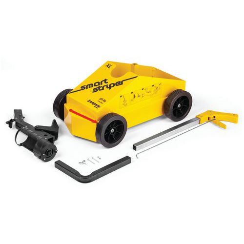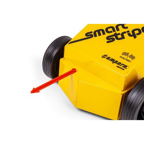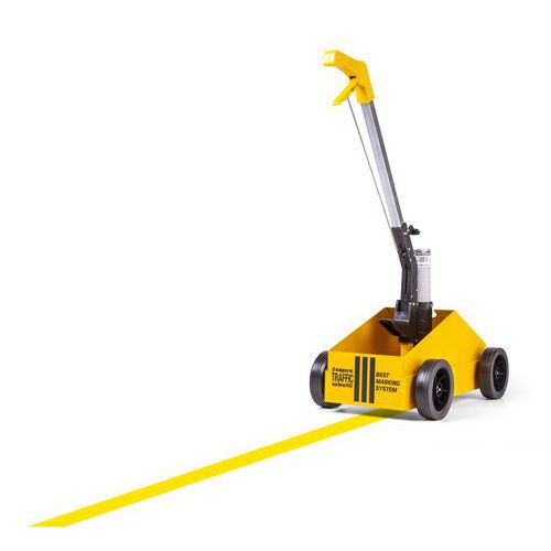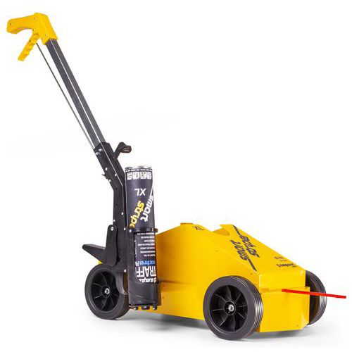 - Peso: 7 kg. Seta de orientação vermelha de alta visibilidade. Rodas com 147 mm de diâmetro, extragrandes de 40 mm, banda de rodagem macia, para um rolamento e estabilidade perfeitos no interior e exterior. Caixa com porta-aerossóis: para uma reserva rápida de 5 aerossóis AMPERE TRAFFIC EXTRA PAINT XL®, ou seja, entre 400 e 600 m de traçado linear, dependendo da largura do traçado e da natureza do piso. O aerossol de tinta de marcação de piso AMPERE TRAFFIC EXTRA PAINT XL® é colocado automaticamente no suporte. Pega ergonómica e gatilho de acionamento mais confortáveis. Sem manutenção nem limpeza, 10 anos de garantia.