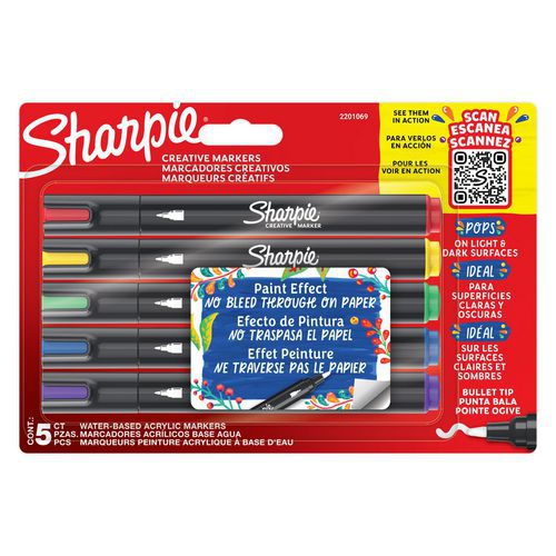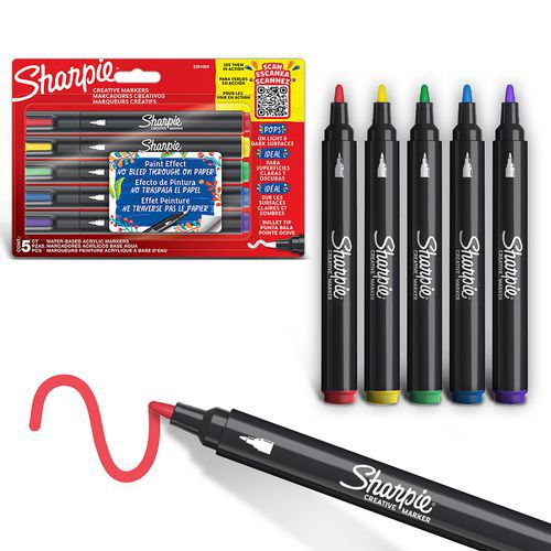 Marcadores de tinta criativos da Sharpie. Ponta de ogiva. Largura do traço: 2,5 mm. Blister de 5