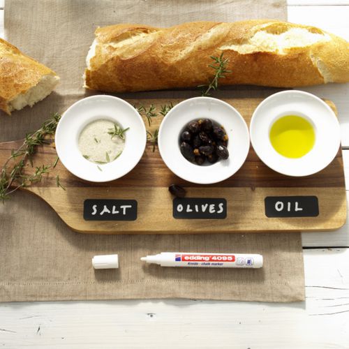 Giz líquido à base de água. Facilmente apagável com um pano húmido. Perfeita opacidade. Caudal de tinta controlado por válvula. Fabricado na Alemanha