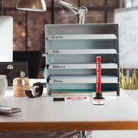 Resistente à água. Secagem rápida. Marcador de odor reduzido. Tinta indelével atóxica, sem xileno nem tolueno. Fabricado na Alemanha