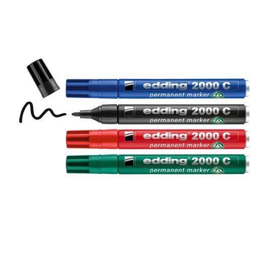 Marcador Edding 2000C e 2200C, Tinta cor: Multicor, Ponta forma: Ogiva, Material corpo: Alumínio Marcador Edding 2000C e 2200C, Tinta cor: Multicor, Ponta forma: Ogiva, Material corpo: Alumínio