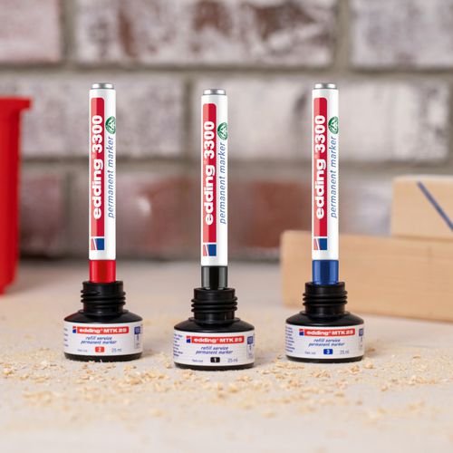 Produto multiusos de alta qualidade: plástico, metal e vidro. Tinta à base de álcool e de solventes sem tolueno nem xileno. Resistente à água. Secagem rápida. Marcador com odor reduzido. Fabricado na Alemanha