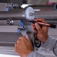 Marcador indelével com pouco odor. Tinta com pouco odor. Resistente à água. Secagem rápida. Estrutura em plástico. Recarregável por capilaridade. Sem xileno nem tolueno. Fabricado na Alemanha
