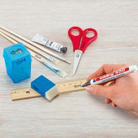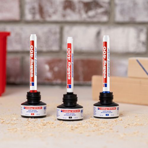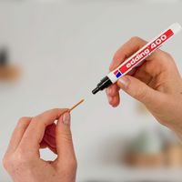 Marcador permanente com traço fino, de fraco odor, para escrever em quase todos os materiais: papel, cartão, vidro, metal, etc. Resistente à água, à luz e à abrasão. Tinta indelével atóxica, sem xileno nem tolueno. Secagem rápida.