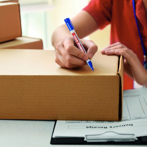 Marcador permanente com traço fino, de fraco odor, para escrever em quase todos os materiais: papel, cartão, vidro, metal, etc. Resistente à água, à luz e à abrasão. Tinta indelével atóxica, sem xileno nem tolueno. Secagem rápida. Fabricado na Alemanha