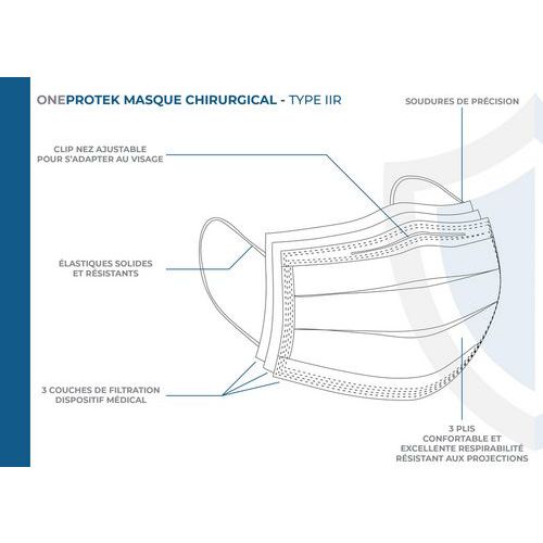 A utilização adequada desta máscara limita a transmissão de vírus respiratórios e protege tanto o utilizador como os outros, bem como os produtos manuseados.