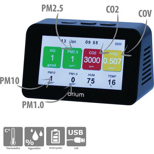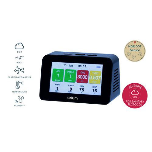 | Nome do artigo | Medidor de CO2 para espaços interiores – COV e partículas finas – Quaelis 34 – Orium, Fixação na parede: não |