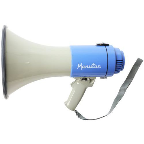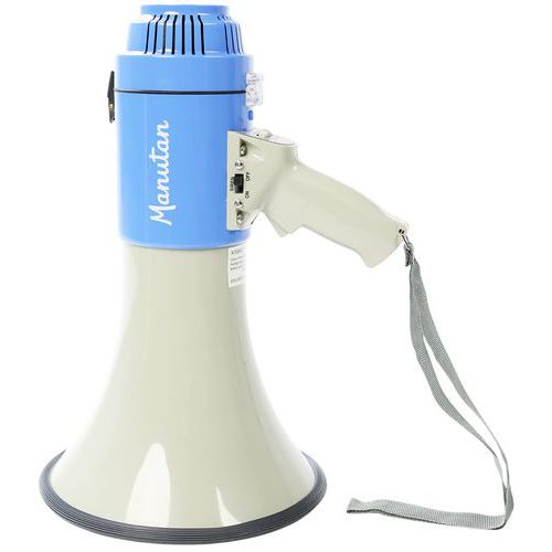 Megafone com sirene – Manutan Expert Megafone com sirene. Possui uma correia para maior segurança.