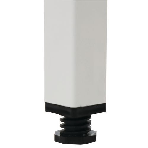 Mesa com pé aparafusado para nivelar.