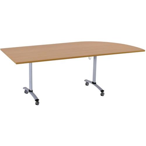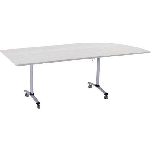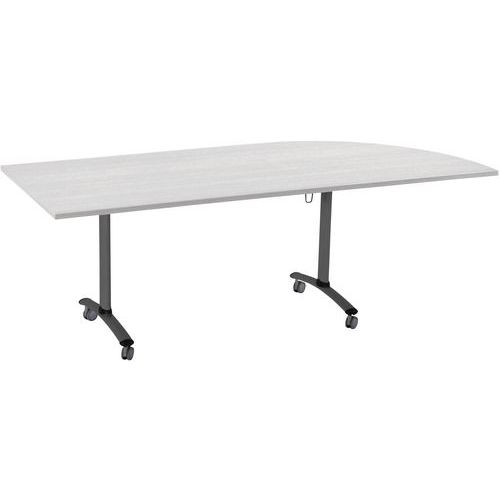 A mesa de reuniões com canto à direita dobrável Axe com tampo rotativo permite poupar espaço ao armazenar. Bloqueio automático do tampo nas posições de trabalho (horizontal) e vertical (armazenamento). Sistema de ligação rápida entre os tampos através de parafusos de aperto manual. Está equipada com 4 rodízios de Ø 75 mm com travão. A mesa de reuniões com canto à direita dobrável Axe com tampo rotativo permite poupar espaço ao armazenar. Bloqueio automático do tampo nas posições de trabalho (horizontal) e vertical (armazenamento). Sistema de ligação rápida entre os tampos através de parafusos de aperto manual. Está equipada com 4 rodízios de Ø 75 mm com travão.