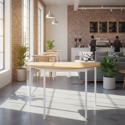 Utilize esta bonita e sólida mesa em meia-lua, para criar a organização necessária em qualquer circunstância