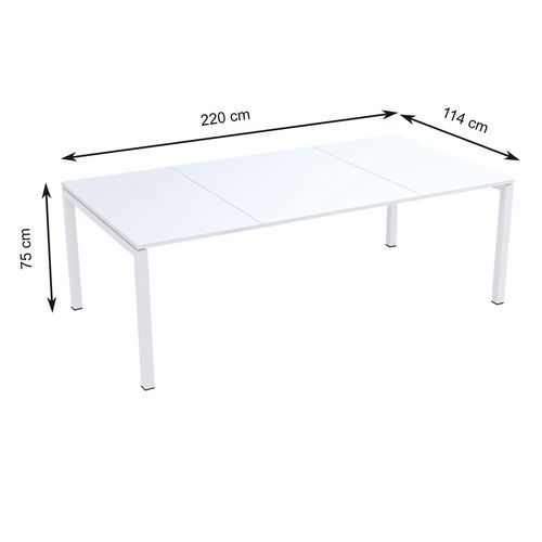 Mesa de reuniões robusta com estrutura metálica que garante uma estabilidade perfeita. Facilmente incorporável numa sala de conferências ou num escritório graças ao seu design moderno. Extremamente fácil de montar: montagem em menos de 5 minutos.