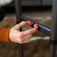 - 3 alturas (sistema de regulação com uma mão): altura de 61 cm para crianças, altura da mesa de 74 cm ou altura do plano de trabalho de 91 cm.