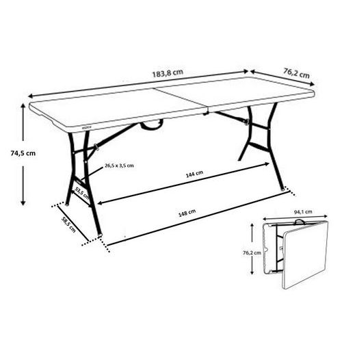 Mesa retangular dobrável em preto – 183 x 76 cm – Lifetime, Peso: 13 kg
