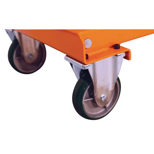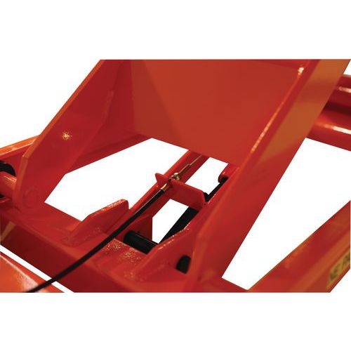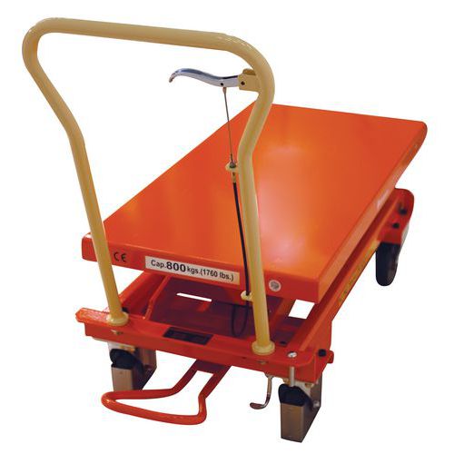 - Mesa elevatória fácil de manusear, equipada com rodas com pouca resistência ao arranque.