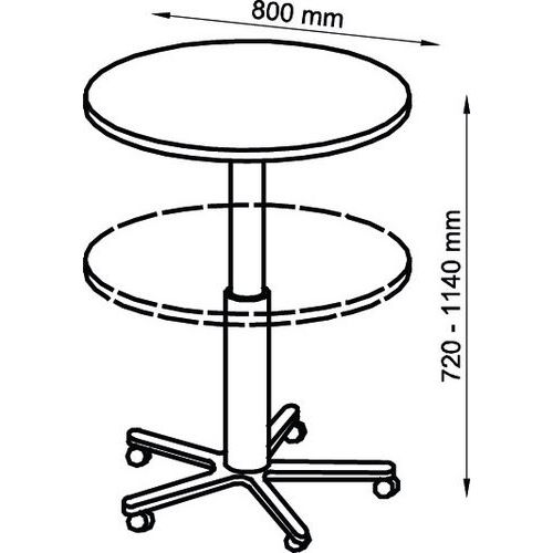 Mesa móvel regulável em altura, Altura: 72 cm, Largura: 80 cm, Forma: Redondo, Material tampo: Em melamina Mesa móvel regulável em altura, Altura: 72 cm, Largura: 80 cm, Forma: Redondo, Material tampo: Em melamina
