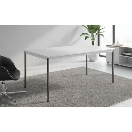 Mesa polivalente Manutan – 180 cm de largura – Manutan Expert Observe a construção robusta dos tubos em metal e batentes práticos. Coloque a mesa a qualquer nível graças aos parafusos de regulação.