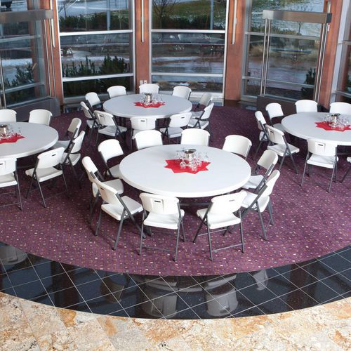 | Nome do artigo | Mesa redonda dobrável – 183 cm – Furnitrade, Tipo de base: 4 pés, Altura: 74 cm, Largura: 183 mm |