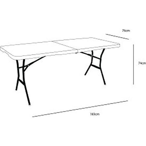 | Nome do artigo | Mesa retangular dobrável mala Lifetime, Tipo de base: Em L, Altura: 74 cm, Largura: 183 cm, Forma: Retângulo |