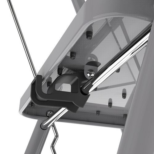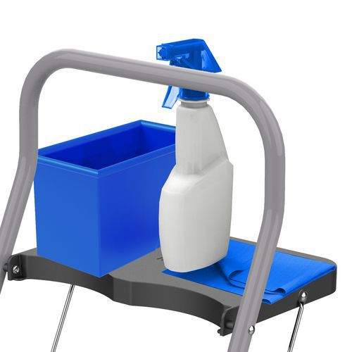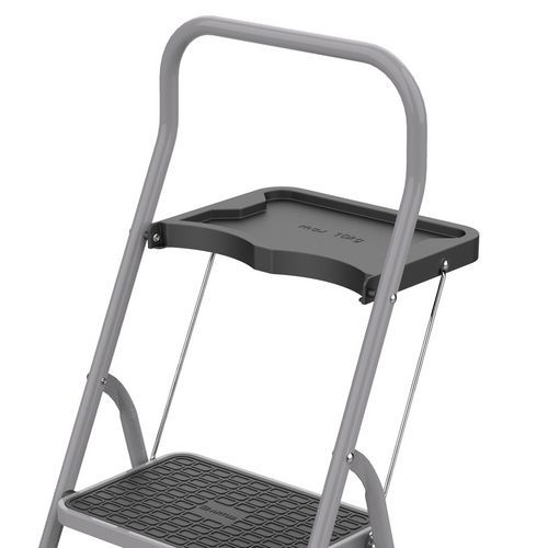 Fornece segurança e uma balaustrada de segurança com uma altura de 61 cm. Proporciona tranquilidade graças ao apoio para os pés com sistema antilevantamento. Estável, equipado com calços antiderrapantes imperdíveis. Prático, possui um porta-ferramentas XL. Confortável, os degraus XXL são cobertos com revestimentos antiderrapantes.