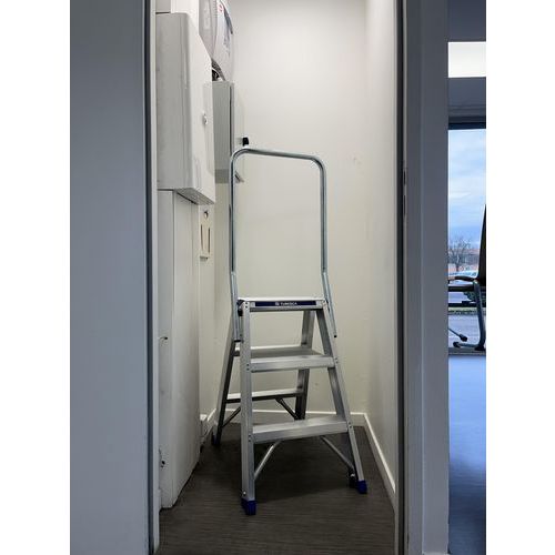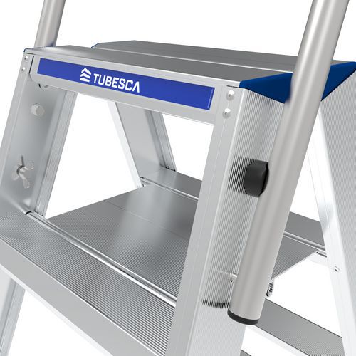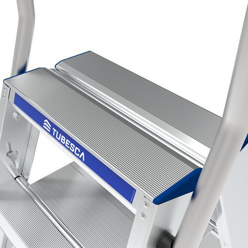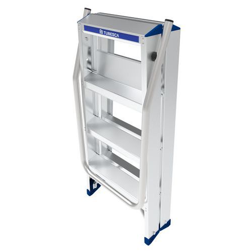 Miniescadote de acesso pelos dois lados com balaustrada de segurança dobrável – Tubesca Miniescadote de acesso pelos dois lados com balaustrada de segurança dobrável – Tubesca