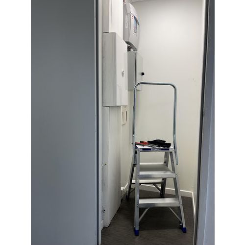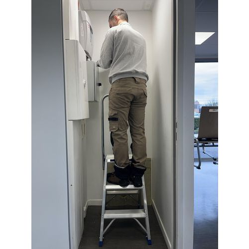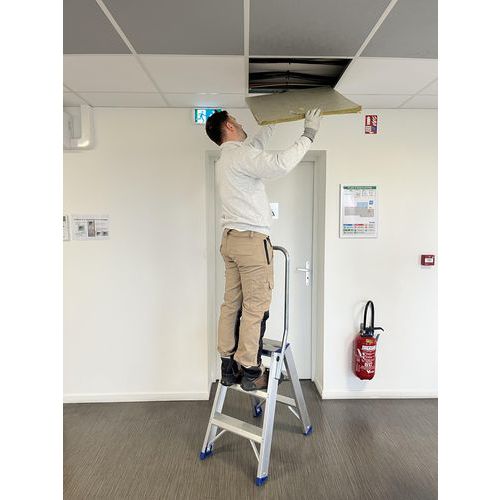 Miniescadote de plano duplo em alumínio com sistema antiafastamento como apoio para os pés para um...