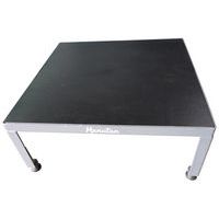 Miniescadote de plataforma em aço de altura média. Pés roscados para regular com a altura pretendida. Posição em altura fixada com contraporcas. Plataforma em madeira com revestimento antiderrapante.