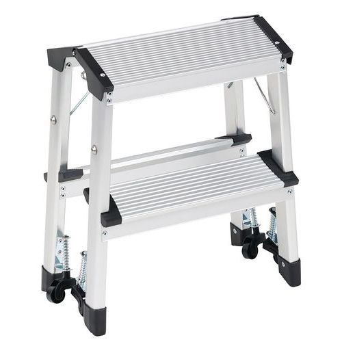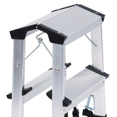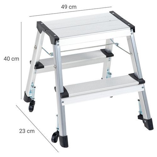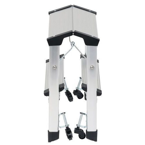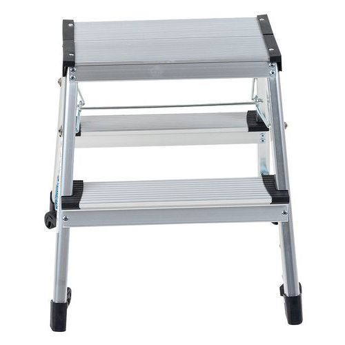 Miniescadote dobrável de duplo acesso em alumínio. Confortável e seguro com degraus estriados. 4 rodízios: fácil de deslocar. Carga máx. (kg) : 150 Garantia do cliente : 10 anos