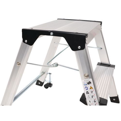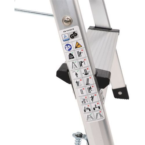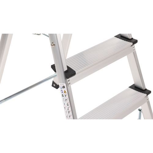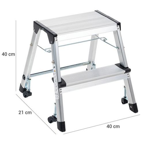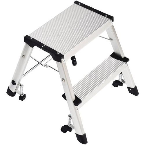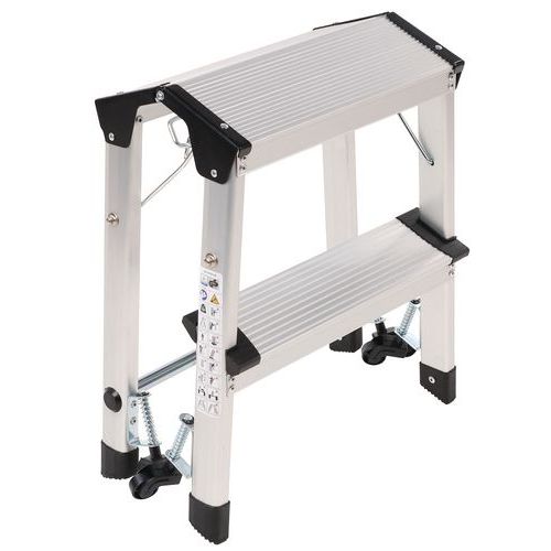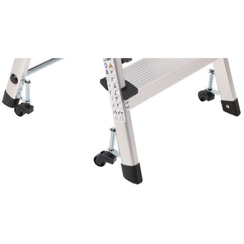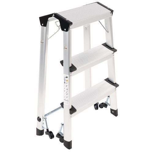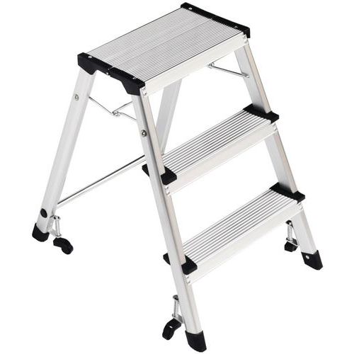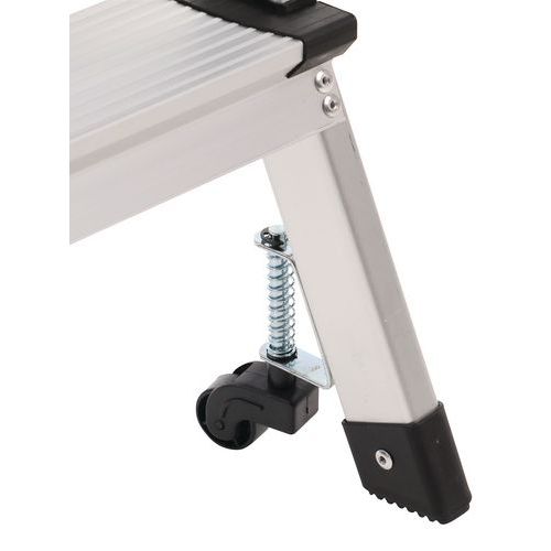 Miniescadote dobrável de simples acesso em alumínio. Confortável graças aos degraus estriados antiderrapantes. Deslocação fácil graças aos 4 rodízios autorretratéis. Garantia do cliente : 10 anos Carga máx. (kg) : 150