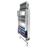 O STEP UP é um miniescadote em alumínio. Os degraus de 20 x 36 cm, a balaustrada de segurança e o porta-ferramentas com gancho porta-baldes tornam o STEP UP mais seguro e confortável. Leve e ultra compacto: 12,6 cm dobrado. Equipado com duas rodas de transporte.