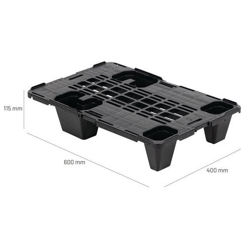 | Nome do artigo | Minipalete leve e encaixável reciclada, Carga estática máx.: 600 kg, N.º de entradas: 4, Largura: 400 mm |
