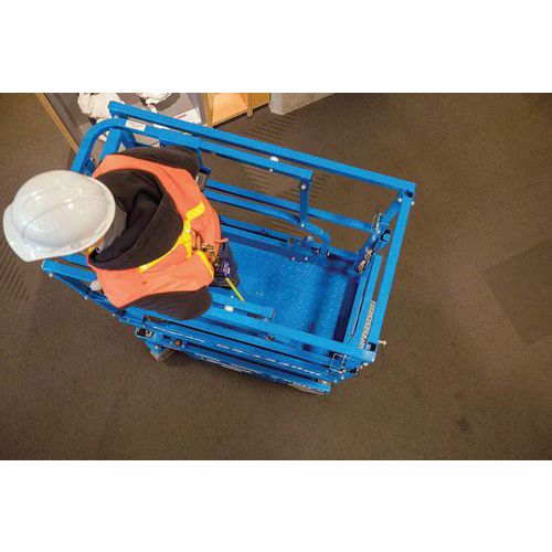 - Estabilidade e conforto no trabalho: piso com placa diamantada e articulação centrada por baixo da plataforma.