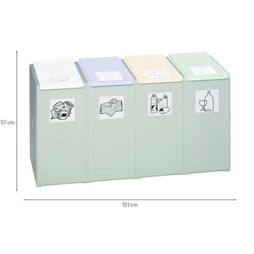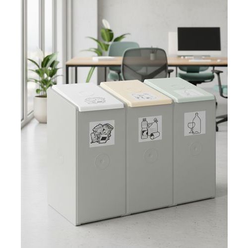 Otimize a separação de resíduos com este módulo de reciclagem em plástico robusto. Identifique facilmente cada fluxo com tampas de cores diferentes para uma gestão eficaz. Adapte a configuração de acordo com as suas necessidades graças ao sistema modular e evolutivo. Valorize o seu espaço com uma solução de separação seletiva elegante e profissional. Facilite a manutenção diária com materiais fáceis de limpar e resistentes.