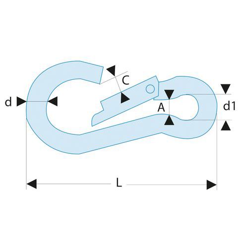 - Mosquetão em inox 316: elevada resistência à corrosão.