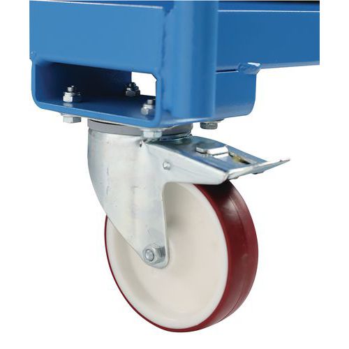 Fácil manuseamento graças às 2 rodas fixas e às 2 rodas giratórias com travão.