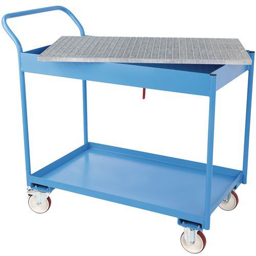 Móvel de apoio com caixa de recolha e grelha, Cap. de retenção: 50 L, Cores: Azul, Comprimento total: 1170 mm