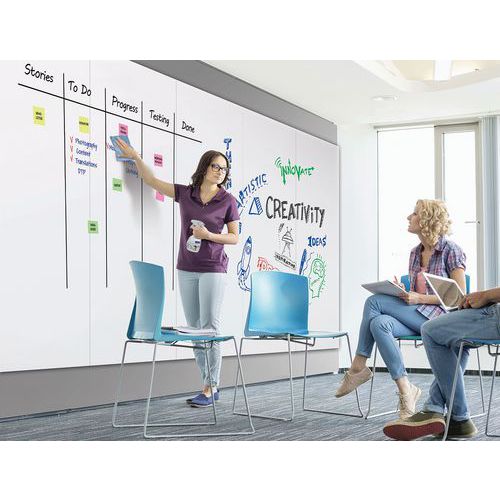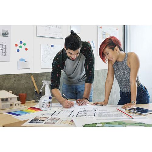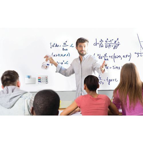 Secagem rápida: ideal para quadros XL em salas de aula, salas de reuniões e escritórios. Basta pulverizar e limpar com um pano em microfibra. Desinfeta e protege a superfície do quadro. A limpeza regular da superfície do quadro prolonga a sua vida útil. Frasco de spray estanque, fácil de manusear.