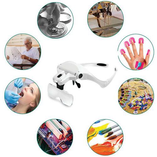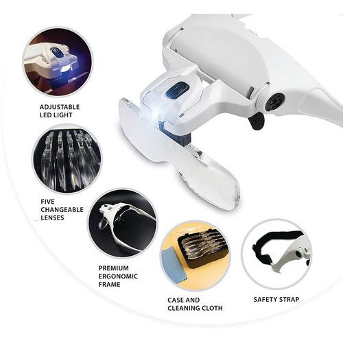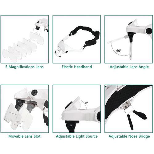 Lupa profissional com 5 objetivas intermutáveis: 1,0X, 1,5X, 2,0X, 2,5X, 3,5X, ideal para modelismo, reparação de relógios, bordados, dentistas, trabalhos pequenos em miniatura.