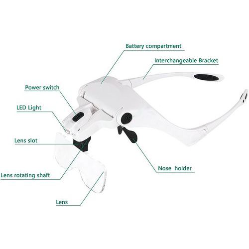 Óculos com lupa luminosa com 5 dioptrias intermutáveis – Velamp, Fluxo luminoso: 12 lm