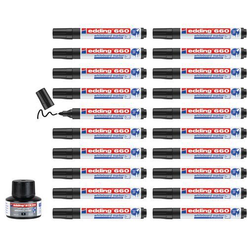 | Nome do artigo | Pack 20 marcad. e660 pretos + 1 recarga de oferta – EDDING, Tinta cor: Preto, Materiais do corpo: Plástico |