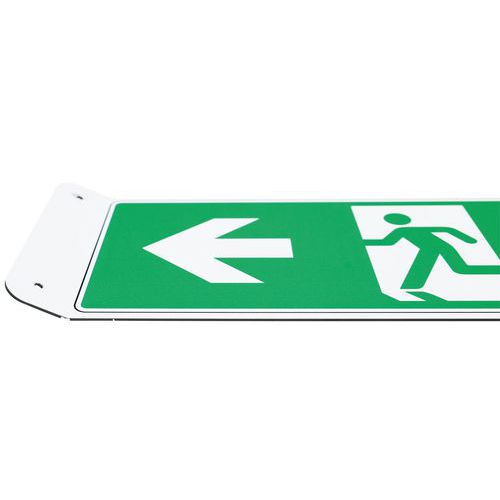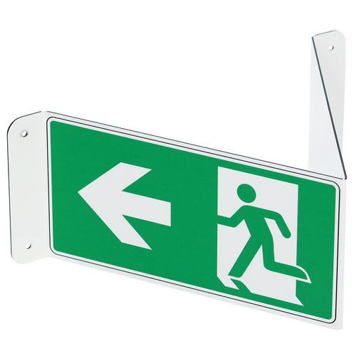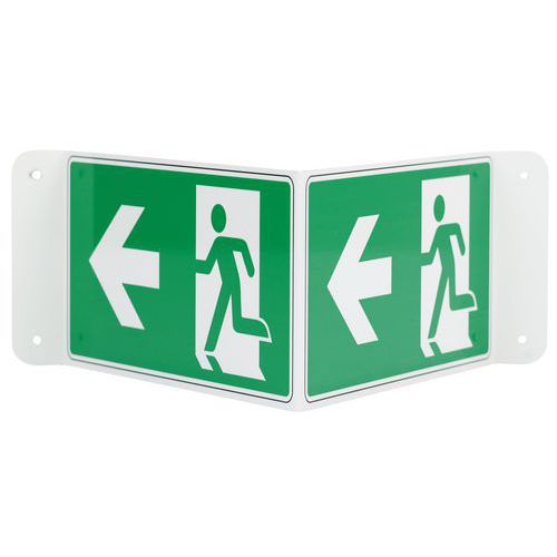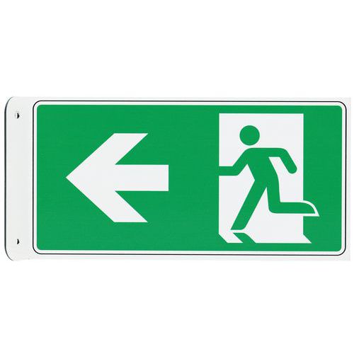 Painel em V – saída de emergência com seta para a esquerda – alumínio – Manutan Expert