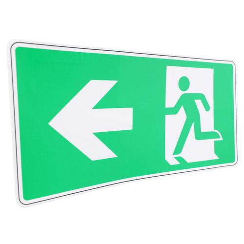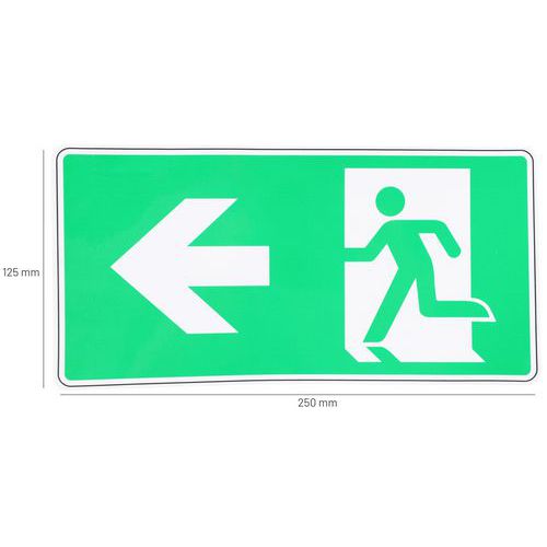 | Nome do artigo | Painel – saída de emergência com seta para a esquerda – adesivo – Manutan Expert, Adesivo: sim, Rígido: não |