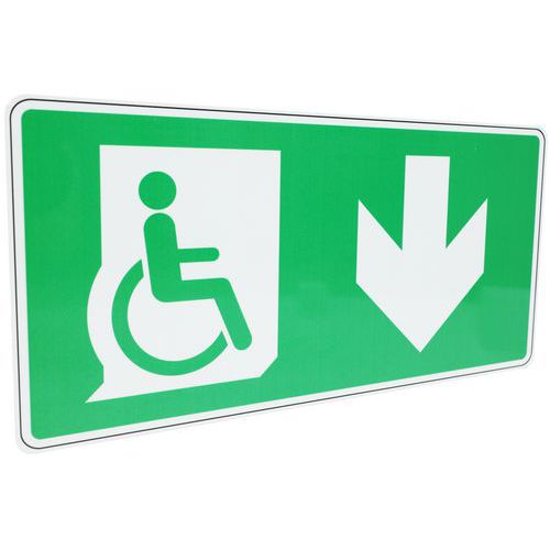 Painel Saída para pessoas com incapacidades, seta para baixo em alumínio – Manutan Expert