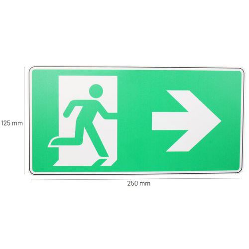 | Nome do artigo | Painel – Saída de emergência com seta para a direita – PVC – Manutan Expert, Adesivo: não, Rígido: sim |