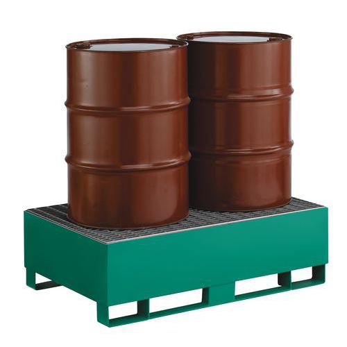 Palete com patins, Cap. (n.º de bidões): 2, Piso: sim, Cap. de retenção: 220 L, Material: Aço