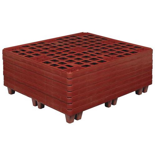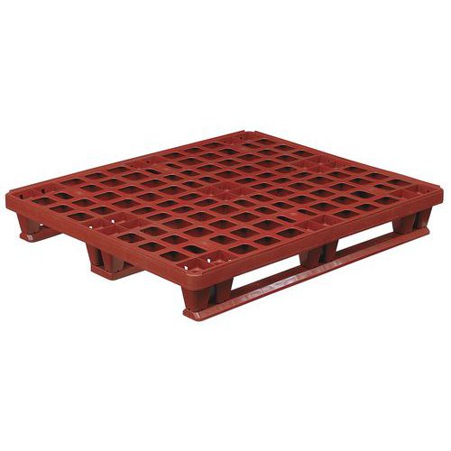 Palete utilizável em transportadores com rolos graças ao seu design com sapatas.