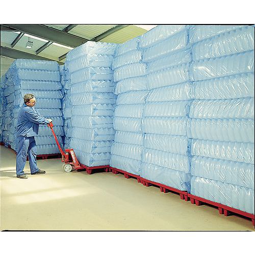 Com rebordo antideslizamento para que a carga permaneça no devido lugar sobre a palete.