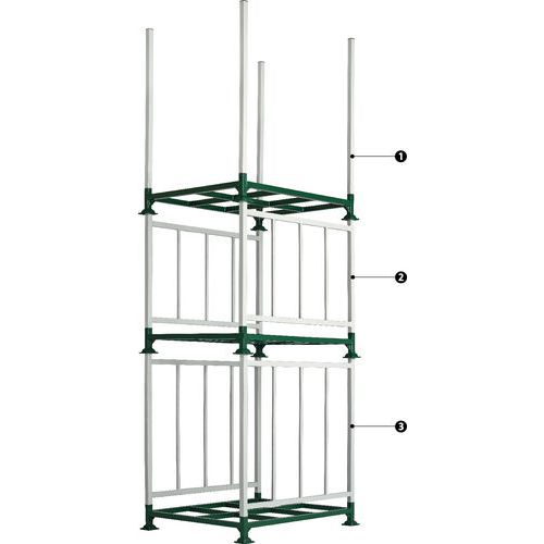 Palete tubular resistente em chapa de aço lacado.