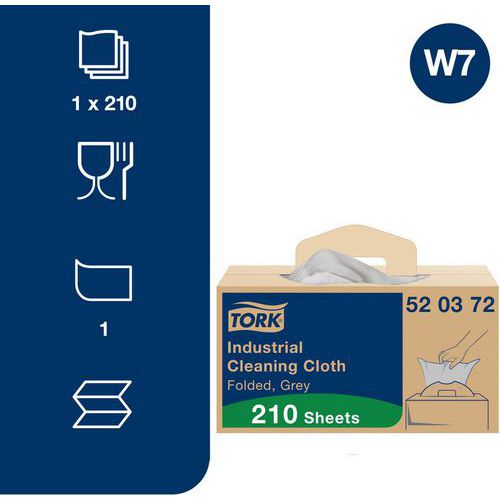 | Nome do artigo | Pano de limpeza industrial dobrado Handy Box – W7 – Tork, Cores: Cinzento, Material têxtil: Pano |